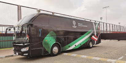 亚足联提供的三个选项分别是:飞龙在天、中国之骄;勇气,毅力,坚持不懈的努力;为同一个梦想而战。结果,最后一个当选。这两天的训练中,国足将士已经坐上了球队的专属大巴(见右上图 关尹摄),车身以黑色为主调,上面印有红、白、绿色条纹,包含了阿联酋国旗的4种颜色。最显眼的莫过于这句口号:为同一个梦想而战。有意思的是,不知是否是国足方面有意为之,大巴车的车牌号是W 21366,两个“6”结尾寓意“六六大顺”。这辆“吉祥大巴”,真的能给国足带来好运吗?