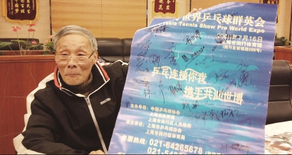一年一度的新民晚报红双喜杯比赛是施有忠的节日。“家里的晚报,但凡有乒乓报道我都会收藏。”