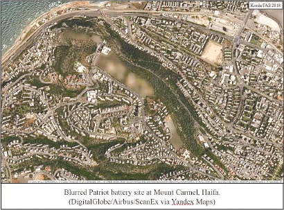 Yandex发布的以色列海法卫星照片,以军爱国者导弹阵地被模糊化,但此举形同暴露阵地位置