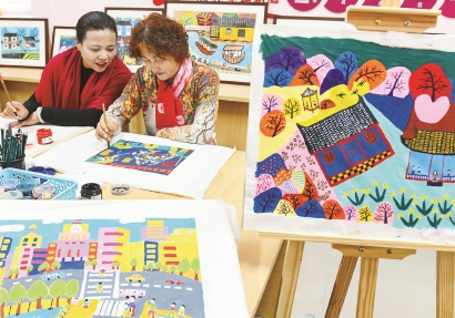 前天下午,金山区山阳镇海尚居委会开展“手绘农民画欢乐迎新年”活动。现场居民通过农民画丰富的艺术形式,描绘金山的变化、勾勒乡村生活的美好,迎接农历新春的到来。 本报记者 陶磊 摄影报道