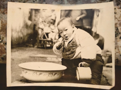 市民马蒋荣一九八二年为儿子拍摄的刷牙照