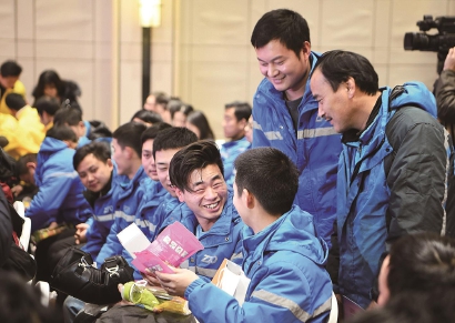 昨天,上海共青团服务快递行业青年新春集中行动举行,共青团上海市委联合各方,通过“青春上海”网上共青团平台和线下新春送温暖活动,“网罗”近10万快递小哥,送上贴心的服务和福利。本报记者孙中钦摄影报道