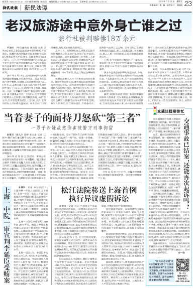 日前,长宁法院对此案作出了一审判决:被告旅行社对王老伯的死亡承担15%的赔偿责任,赔偿18.4万余元:驳回了原告其他诉讼请求。