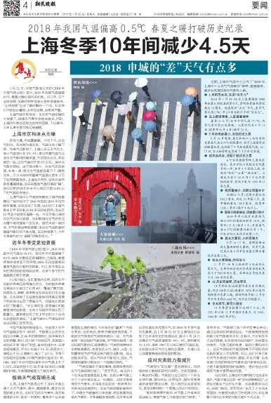 近期,上海市气候中心公布了“2018年上海市十大天气气候事件”榜单,最暖春季、最多台风登陆等天气事件入榜。