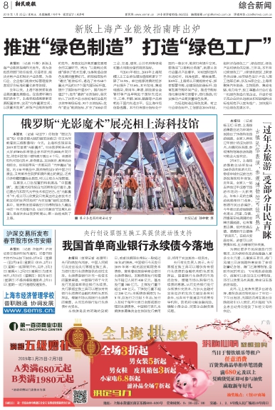 去年以来,上海不断探索制造业高质量发展路径。在资源环境约束的条件下,上海积极提高要素资源配置效率,实现“向存量要空间、以质量求发展”。新版产业能效指南的发布,是落实经济高质量发展理念的关键环节,既为“以能耗论英雄”提供了技术支撑,也是制造业绿色发展的重要标尺。新版指南发布“最优”能效标杆,遴选了本市60个重点产品的117个国内国际标杆值,提升了国际标杆值19个,国内标杆值27个;发布“最新”水效指标,首次纳入了29项产品水效标准和设备用水效率等级标准、92个水效指标;发布“更全”能效指标,扩充了800余项工业、交通、建筑、公共机构等领域和重点用能设备的能效指标。