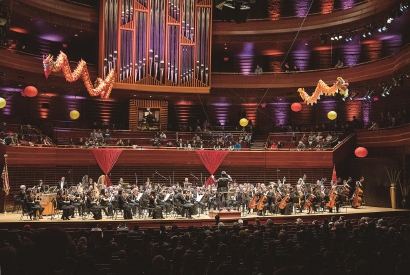 美国费城的地标场所金梅尔表演艺术中心的音乐厅里,第一次挂上了中国龙的装饰物,迎接远道而来的中国贵宾。北京时间今天上午,上海爱乐乐团联合费城交响乐团共同为当地观众精彩呈现了费城首届中国新年音乐会,送上了中国新年的问候与祝福。