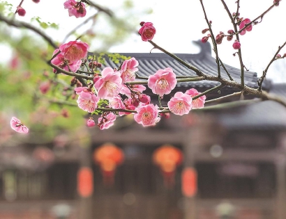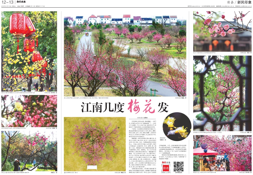 隔着镜头,梅花的暗香仿佛扑鼻而来。在莘庄公园里,400多株、30多个品种的梅花争奇斗艳,宫粉、朱砂、玉蝶等春梅纷纷傲放枝头。而金山区的花开海上生态园内,梅花也相继盛开,涵盖宫粉、朱砂、绿萼、美人梅等八大类。园路曲折迂回,梅溪弯曲荡漾,梅花疏影横斜,别有一番韵味。走上10余处登高赏梅点,眼前便徐徐展现出一幅氤氲的水墨画。宝山区的顾村公园一向以樱花闻名,但不为人知的是,其实园内也有多达1000余株梅花,分布在樱花大道和东方鸟会,囊括红梅、绿萼梅、美人梅、白梅等品种。古猗园内,古色古香的建筑在点点梅花的衬托下更显诗意。此外,在老牌申城赏梅胜地世纪公园,4000余株梅花次第开放,汇聚成一片红、绿、粉、黄、白的“梅花织锦”。