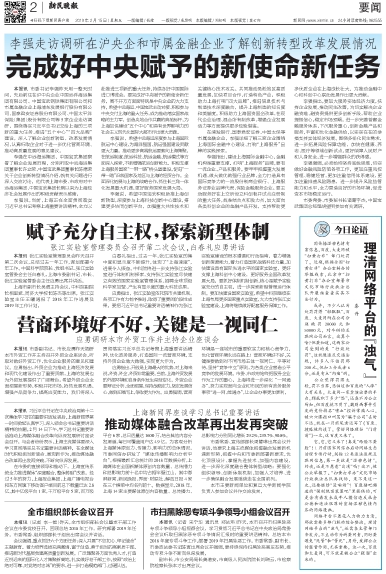 李强指出,建设上海国际金融中心,金融机构是重要支撑。打响“上海服务”品牌,要有一流企业、产品和服务。要牢牢把握重大发展机遇,做大做优做强行业品牌,全力打造具有国际竞争力的一流股份制商业银行、上海服务证券业品牌代表、保险金融服务企业。要主动服务好在上交所设立科创板并试点注册制的重大任务,找准结合点和发力点,加大面向各类科创企业的金融产品开发,支持帮助更多优质企业在上海成长壮大,为推动金融中心和科创中心联动发展作出更大贡献。