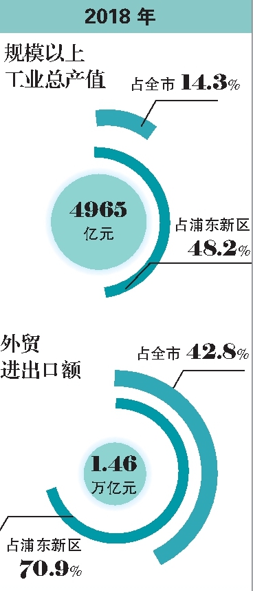 寒冬知劲质,尽管大环境形势严峻,但上海自贸区仍克服重重阻力,交出了一份不错的“成绩单”。数字显示,2018年,上海自贸试验区实现规模以上工业总产值4965亿元,占浦东新区48.2%,占全市14.3%。实现外贸进出口额1.46万亿元,占浦东新区70.9%,占全市42.8%。社会投资持续活跃,全年新设企业约7200户,累计新设企业5.88万户,试验区范围内累计共有企业8.85万户,占浦东新区31.1%。外商投资稳步发展,全年新设外资企业近1300家,在自贸试验区新设企业数的占比由试验区成立前的5.2%上升至目前的18.2%。