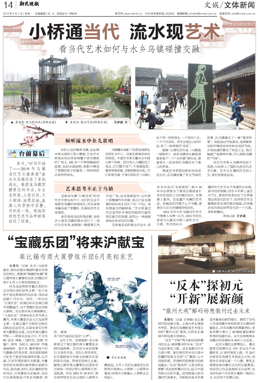 昨天,“时间开始了——2019年乌镇当代艺术邀请展”在水乡乌镇迎来了首批观众。散落在乌镇西栅景区的作品,与古老院落、土窑旧坑、大小剧场、油菜花地,在游人的穿梭中层叠、交织在一起,就地取材的艺术作品和游客拉近了距离。