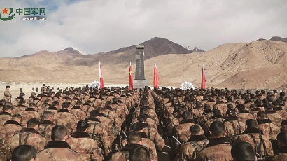 解放军指战员在先烈纪念碑前默哀