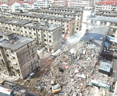 本报讯(记者 江跃中)昨天下午,彭浦新村街道彭三小区内的彭盛养老院、平顺浴室,在阵阵轰鸣声中被顺利拆除,全市最大的居民非成套住宅改造项目——彭三五期旧住房成套改造项目拆除重建工作,打响了“第一枪”。3年后,居民将回搬原址,住上重建后的新房。