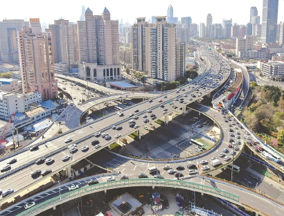 今天上午,天目路“大转盘”上两根下匝道迎来封闭后首个工作日早高峰,由于各方准备充分,早上8时,南北高架北向南方向交通状况平稳有序。 本报记者 陈梦泽 摄影报道