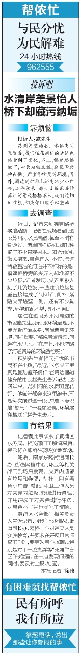 苏州河整治后,水体有明显改善,我们住在周边的居民也感受到了变化。不过,福建路桥墩下,却长期被垃圾、粪便等秽物占据,严重影响周边环境。另外,周边的灯柱上还有不少小广告。这些景象,都与日益完善的苏州河景观格格不入。我们迫切地希望,相关部门能予以整治。