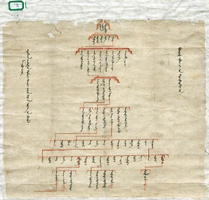 蒙古族《伊克昭盟鄂尔多斯左翼前旗巴图蒙克达延汗三子巴尔斯博罗特始十九代家谱》中的首幅谱单