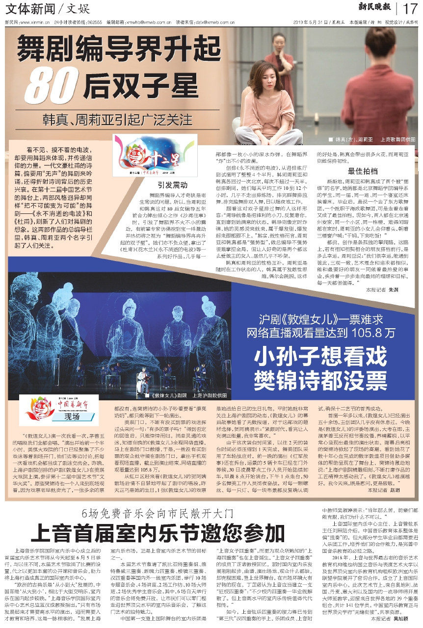 舞蹈界编导人才奇缺是老生常谈的问题。所以,当周莉亚和韩真这对80后女编导五年前合力捧出倾心之作《沙湾往事》时,引发了舞蹈界不大不小的震动,有前辈专家仿佛挖到宝一样激动并热切将之视为“舞蹈编导界冉冉升起的双子星”。她们亦不负众望,拿出了《杜甫》《花木兰》《永不消逝的电波》等一系列好作品,几乎每一部都像一枚小小的深水炸弹,在舞蹈界“炸”出不小的波澜。