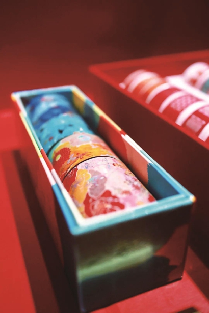 近百个藏着牡丹香和古龙香的锦囊在博览会现场被一抢而空,印着董其昌青绿山水的真丝眼罩成为旅途上人们的必备产品。能够在长途飞行时戴着这样文人意趣的眼罩入睡,那么十几个小时飞跃大洋的旅途也不会觉得漫长无边。一款以水洗牛皮纸为材料的旅行收纳袋,有类似绒毛皮革手感,环保耐用自身还具备降解能力,具有不怕水洗不怕撕扯的特性,袋上的波纹是海水江崖纹的传统纹样。无论去到世界何处,一路都有传统文化相伴。