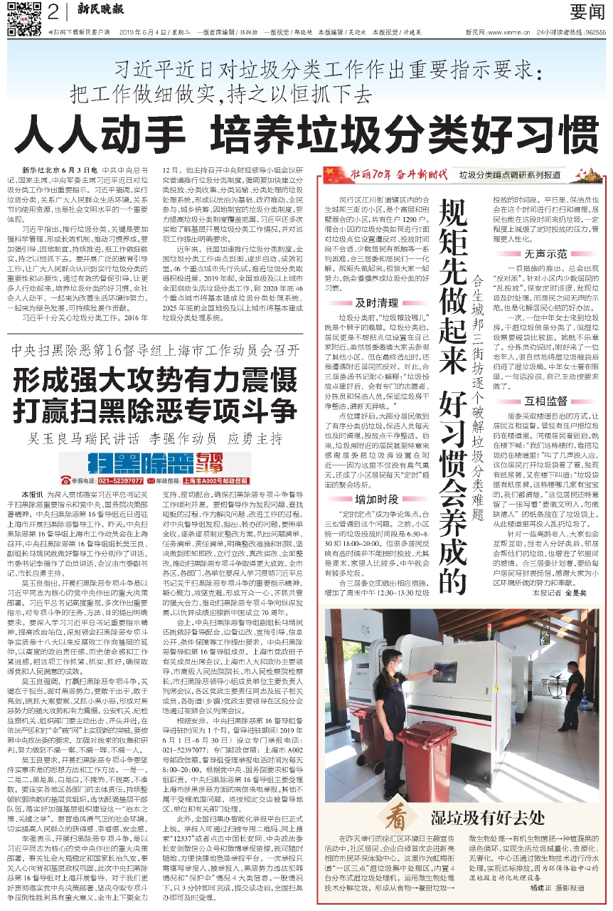 新华社北京6月3日电 中共中央总书记、国家主席、中央军委主席习近平近日对垃圾分类工作作出重要指示。习近平强调,实行垃圾分类,关系广大人民群众生活环境,关系节约使用资源,也是社会文明水平的一个重要体现。