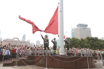 国旗班战士升起无缝国旗,心里充满了自豪感朱博摄