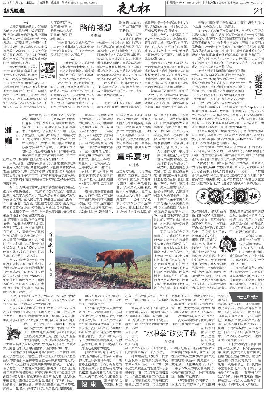慢,安逸闲暇,很美,是一幅法国画家莫纳笔下光和影的交融。这就是生活。我没有到这里散步时,它已经存在,就像花朵,“花开花落奈何天”,变幻不断,却长年的无声无息存在,我来了,画面的颜色一时明白起来:“热爱生活的是好人。”我心里默念这句话,想把它送给我遇到的所有的人,不管认识不认识。生活教给人东西,人便聪明起来,它不是知识,知识是书本上人们要做的功课,同聪明无关。