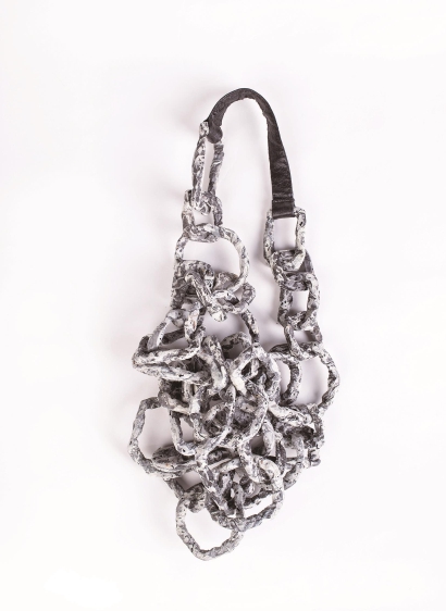 “世界上没有垃圾,只有放错地方的资源”,当垃圾分类成为国内热议话题时,巩志伟、孙铭燕竟然“打开脑洞”,以办公废旧纸张为材料设计了首饰《垃圾计划-2》。因为地质学科背景,两位首饰设计新锐,一直对探索用各种宝石和不同材质锻造首饰孜孜以求。此次,他们的创意是通过“垃圾”和佩戴者的互动,唤起人们对环境问题的关注。