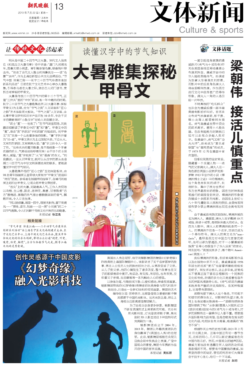 明天是中国二十四节气之大暑,宋代文人张耒在《和晁应之大暑书事》诗中讲道:“蓬门久闭谢来车,畏暑尤便小阁虚。青引嫩苔留鸟篆,绿垂残叶带虫书。”讲述了古代文人雅士的消暑良方——读“鸟篆”“虫书”。作为上海创新型公共文化品牌活动,“节气中国 诗意江南——长宁二十四节气非遗传承创新系列活动”日前在长宁文化艺术中心举办大暑雅集,引导参与者在大暑之际,效仿古人闭门读书,赏析古老神秘的甲骨文。