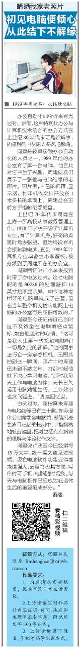 上世纪70年代末周建在上海一所高校从事教务管理工作。1978年学校开设了计算机专业,有了计算机房,好奇的周建时常去张望,但始终没有机会接触到电脑。直到1989年计算机专业毕业生小李留校,被分派到了周建所在的办公室。