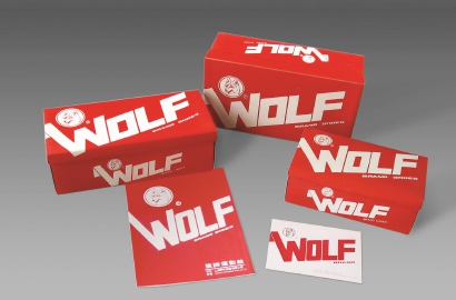 于是企业提出要更换品牌名称,用一个与众不同的“狼”来作为商标,此设计任务就落在我身上。当时是改革开放初期,一些以动物作为商标名称的多是“快鹿”“熊猫”“孔雀”之类的吉祥物,用“狼”作为商标的几乎没有。特别是在注册商标时要写上商标的含义为其所难。经查阅了词典、辞海,对狼的注解全是“凶残”“凶险”“豺狼”“色狼”等,片片贬义。然后“敏捷”“跳跃”两字映入眼帘,这不就是运动鞋的特性吗,于是就以此为切入点,设计了一组不同造型、不同风格狼的形象图案,经过层层筛选,反复修改,最后确定了一个以狼头的特写作为商标。画面上耳朵髙高竖起,两眼炯炯有神的狼,一下子突现在人们面前。由于稀少,此商标一次注册成功,同时在包装设计上也一改过去文字、色彩过多的状况,尽量简洁、醒目。合面采用了红白二色,WOLF英文字母充斥画面,“狼”的标志镶嵌其中,十分醒目。因为鞋类包装一般是在视线的一二米以外,所以大色块、大线条的设计效果尤佳,这也是包装设计要符合产品的属性关键所在。“狼牌”以全新面貌上市后,销售情况大大改观,节节攀升,一跃成为了当年运动鞋的领头产品,在市百一店、华联商厦等商场也时常出现排着长队争购的情况。