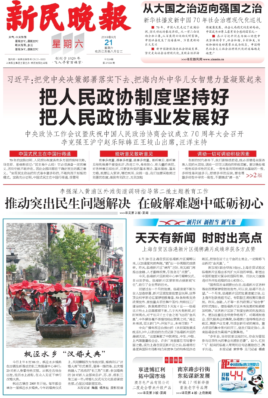 ■70年,中国人民走过了波澜壮阔、惊天动地的豪迈历程。从一穷二白迈向全面小康,从百废待兴迈向文明富强,中国社会发生了沧海桑田、万象更新的巨大变迁 ■新中国持续推进社会领域变革、坚定走向社会治理现代化,呈现出经济持续健康发展、社会大局稳定的良好局面。中国成为世界上最有安全感的国家之一 ■在以习近平同志为核心的党中央坚强领导下,社会和谐、乡村和美、百姓和顺的美好愿景正成为现实,中国特色社会主义社会治理现代化的道路越走越宽广 >>>详见新民网www.xinm in.cn