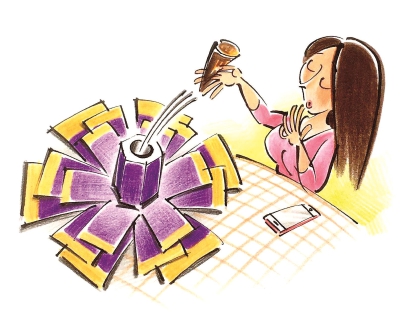 打开精美的六角形包装盒盖,意外的是,眼前出现的并不是她想象中的满满一盒冰淇淋,而是另一只略小一圈的六角形包装盒。而且,为了追求别致,盒身六面的硬纸板还朝向六个方向分别倒了下去,摊在桌子上,差不多有一只面盆大小。