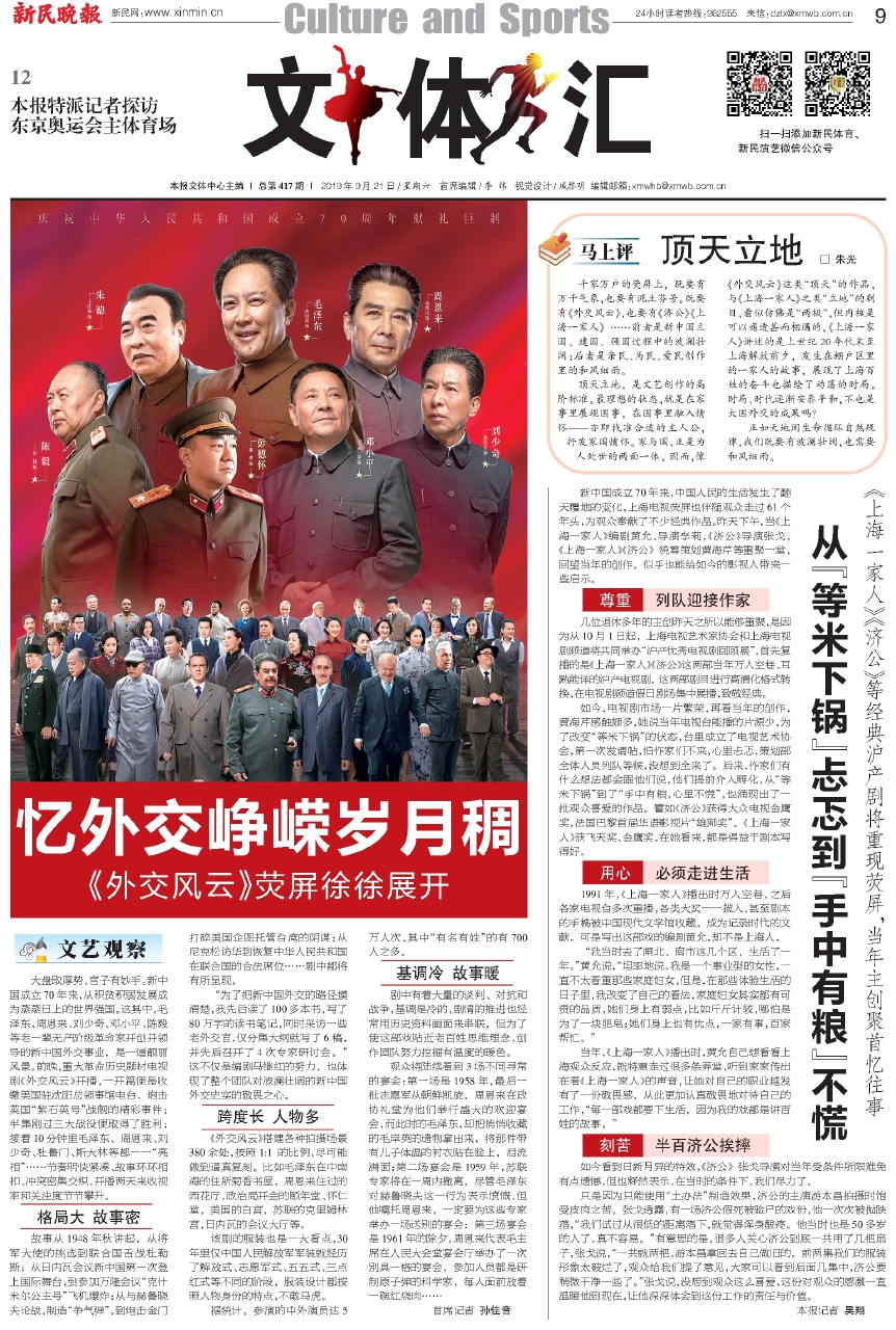 人处世的两面一体。因而,像《外交风云》这类“顶天”的作品,与《上海一家人》之类“立地”的剧目,看似仿佛是“两极”,但内核是可以通透甚而相遇的。《上海一家人》讲述的是上世纪20年代末至上海解放前夕,发生在棚户区里的一家人的故事,展现了上海百姓的奋斗也描绘了动荡的时局。时局、时代逐渐安泰平和,不也是大国外交的成果吗?