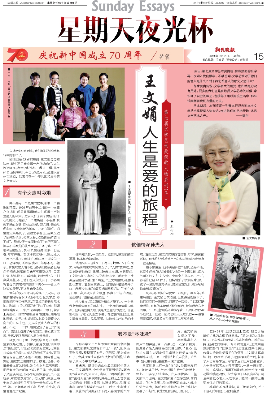 即便已是93岁的高龄,王文娟每每被认出,都免不了被唤得一声“林妹妹”。人生旅途漫漫,有幸,爱相随,一程又一程。几次拜访,诸多探听,今日,点滴片段,虽难以百分百还原,但求勾勒一个非凡却又质朴的文艺大家。