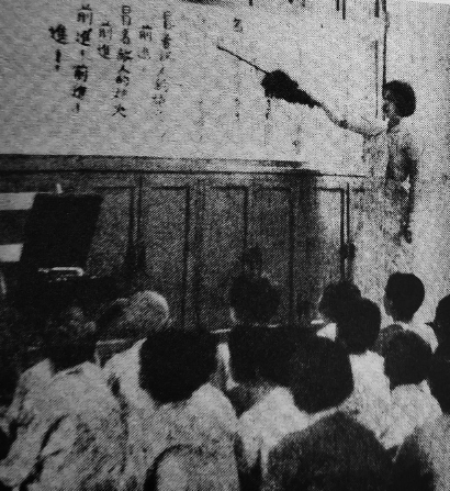 中华慈幼协会收容的难童学唱《义勇军进行曲》