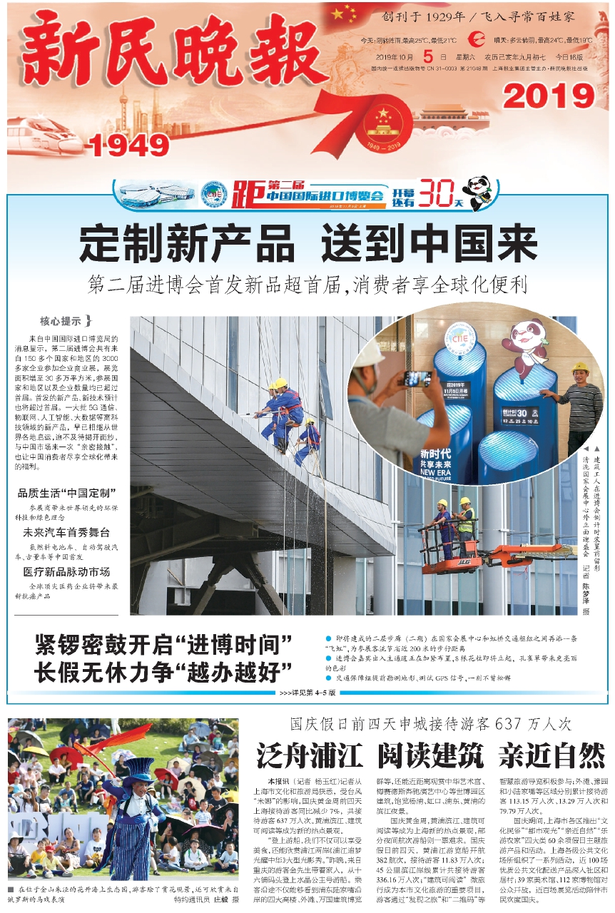 本报讯(记者 杨玉红)记者从上海市文化和旅游局获悉,受台风“米娜”的影响,国庆黄金周前四天上海接待游客同比减少7%,共接待游客637万人次。黄浦滨江、建筑可阅读等成为新的热点景观。