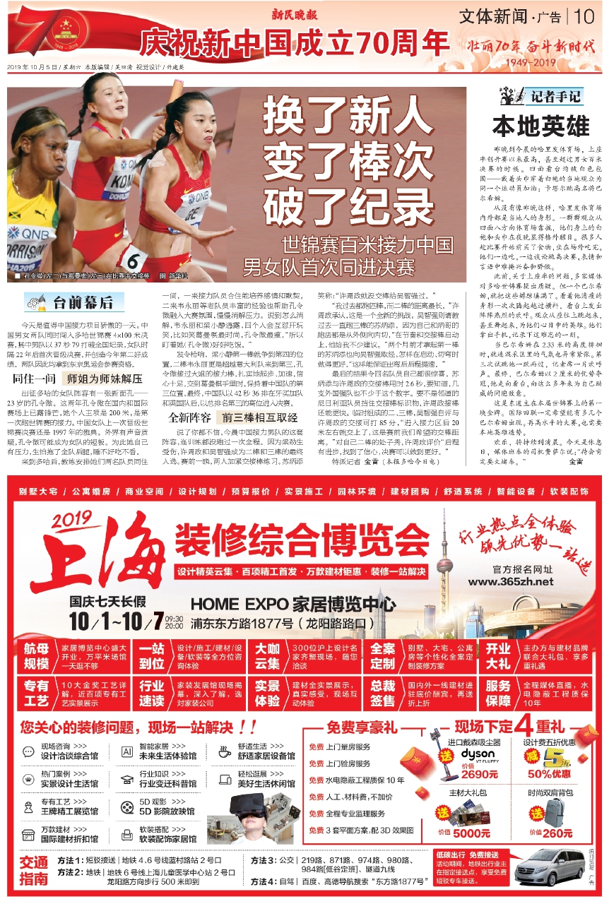 最后的结果令四名队员自己都很惊喜。苏炳添与许周政的交接棒用时2.6秒,要知道,几支外国强队也不少于这个数字。要不是邻道的尼日利亚队员挡住交接棒标识物,许周政接棒还能更快。临时组成的二、三棒,吴智强自评与许周政的交接可打85分,“进入接力区后20米左右就交上了,这是赛前我们希望的交棒距离。”对自己二棒的处子秀,许周政评价“后程有进步,找到了信心,决赛可以做到更好。”