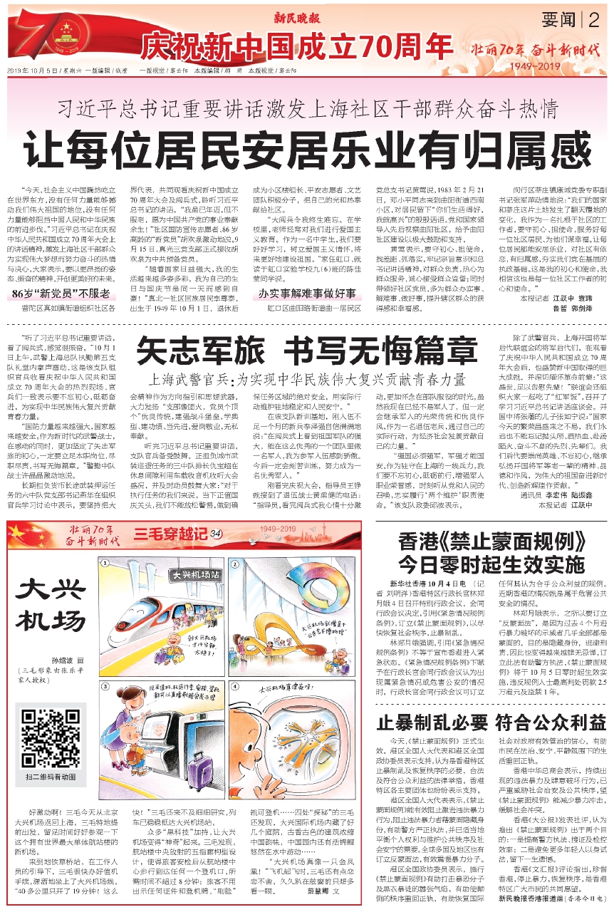 “今天,社会主义中国巍然屹立在世界东方,没有任何力量能够撼动我们伟大祖国的地位,没有任何力量能够阻挡中国人民和中华民族的前进步伐。”习近平总书记在庆祝中华人民共和国成立70周年大会上的讲话精神,激发上海社区干部群众为实现伟大梦想而努力奋斗的热情与决心。大家表示,要以更昂扬的姿态、振奋的精神,开创更美好的未来。