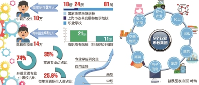 通过构建现代职教体系,本市已初步形成中职-高职-应用本科-专业学位研究生纵向完整的培养体系。本市还积极推进职业教育集团化办学,已成立现代护理、交通物流、商贸、电子信息、旅游、建筑、现代农业、化工、出版等9个行业职教集团以及嘉定、徐汇等16个区域职教集团。 首席记者 王蔚