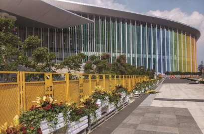 即将建成的二层步廊(二期)在国家会展中心和虹桥交通枢纽之间再添一条“飞虹”,为参展客流节省近200米的步行距离。嘉宾出入的主通道就在国家会展中心的南广场,如今这里正在加紧布置,8根花柱即将立起,孔雀草带来更亮丽的“国旗黄”。交通保障组提前勘测地形、测试GPS信号……精益求精的城市保障工作背后,是一批长假无休的“进博人”,而他们几乎各个都是服务保障首届进博会的“熟面孔”。
