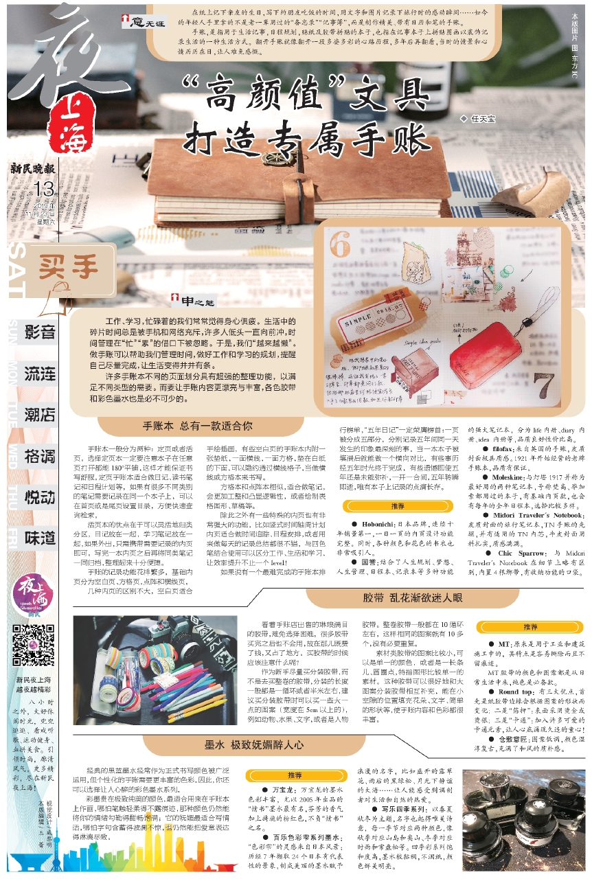 许多手账本不同的页面划分具有超强的整理功能,以满足不同类型的需要。而要让手账内容更漂亮与丰富,各色胶带和彩色墨水也是必不可少的。