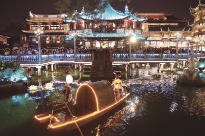 今年10月,一场以风靡全国的大游戏IP《王者荣耀》为主题的夜市活动在豫园商城上演。豫园古街前,明灯璀璨、熠熠生辉,忽然间,九面绛州鼓乐奏响《王者战歌》,带领观众与玩家们“梦回盛唐”,和丰楼墙面上,巨幅投影勾勒出《王者荣耀》游戏中一位又一位英雄的形象,每念出一句出场台词,便会亮相一位英雄。《王者荣耀》与豫园商城合作举办的“王者千灯会”,希望能够以数字IP创新传承中国优美典雅的灯会文化,吸引年轻用户前往观看,体验中国传统文化的魅力。