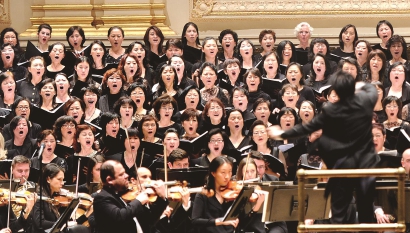 2015年,上海爱乐交响合唱团出访美国,在纽约卡内基音乐厅献演《黄河大合唱》本报记者 郭新洋 摄