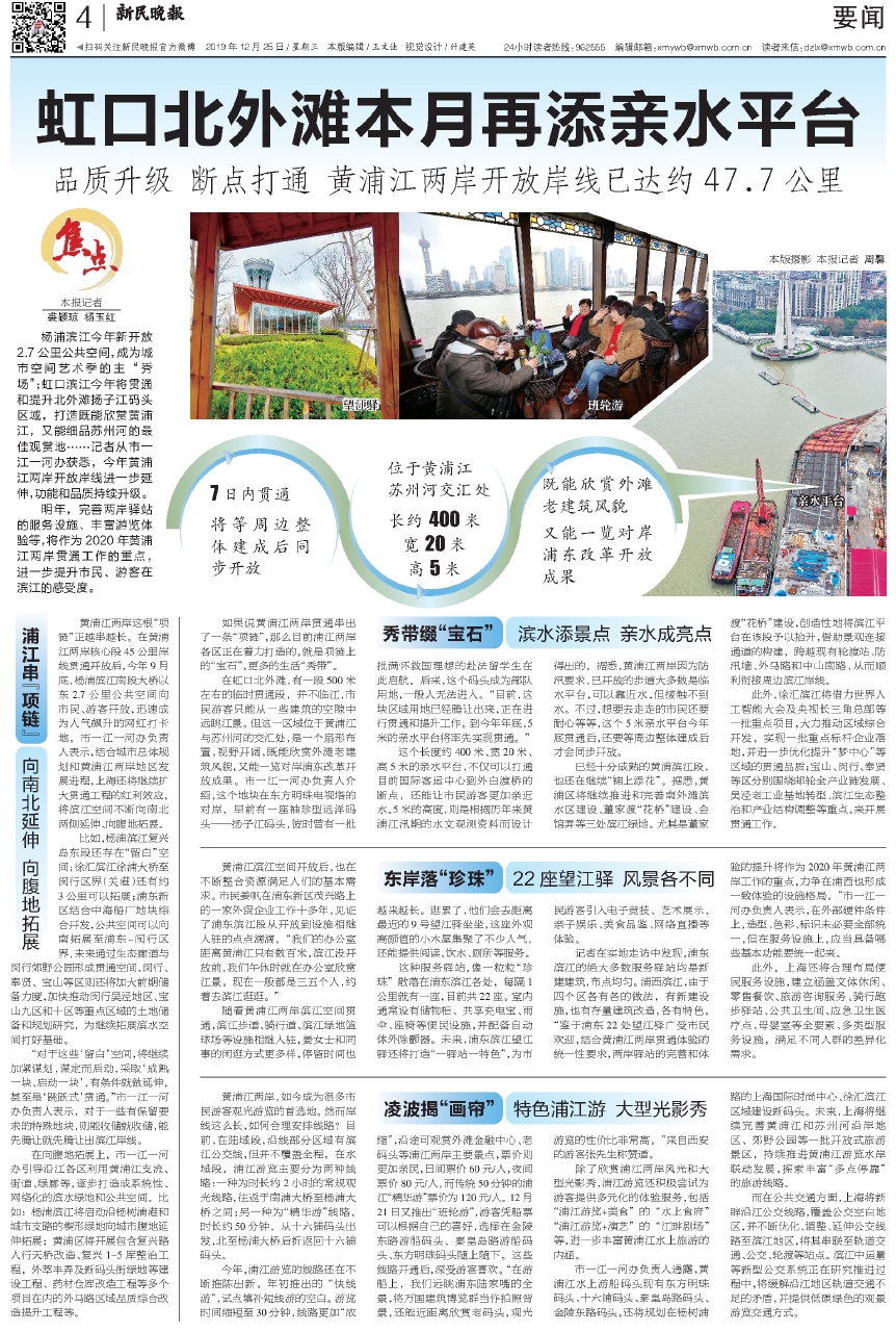 明年,完善两岸驿站的服务设施、丰富游览体验等,将作为2020年黄浦江两岸贯通工作的重点,进一步提升市民、游客在滨江的感受度。