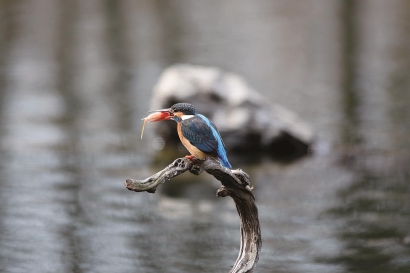 玲珑翠鸟衔虾图(摄影)