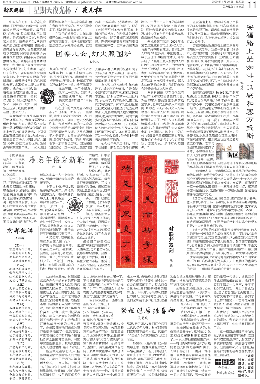 有人说,不让放炮仗,年味也没了。对此我不大苟同。在没有禁令或有禁不止的年里,往往是睡眠不足的。除夕夜等第一批炮仗响完,岁也守了。躺下没多久,第二批次又响起来了。有时天还没亮,第三批次又把人闹醒。至于初五迎财神那天,初四夜就有人放起炮仗接财神,有点抢先的意思。到初五更多的炮仗烟火燃起来,财神爷忙得团团转,不知去哪家好了。放炮仗扰人清梦,污染空气,引发火灾,所以还是不放为好。实在要放,可以开发一个炮仗软件,在手机上放视听效果也是不错的。