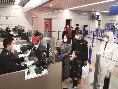疫情就是命令。上海机场边检站制定了“联检协作-登机初查-监管护送-专区检查”特别通关流程,在浦东机场T1、T2、S1边检大厅开通6条专用通道,服务保障疑似患者及同行人安全快速通关。
