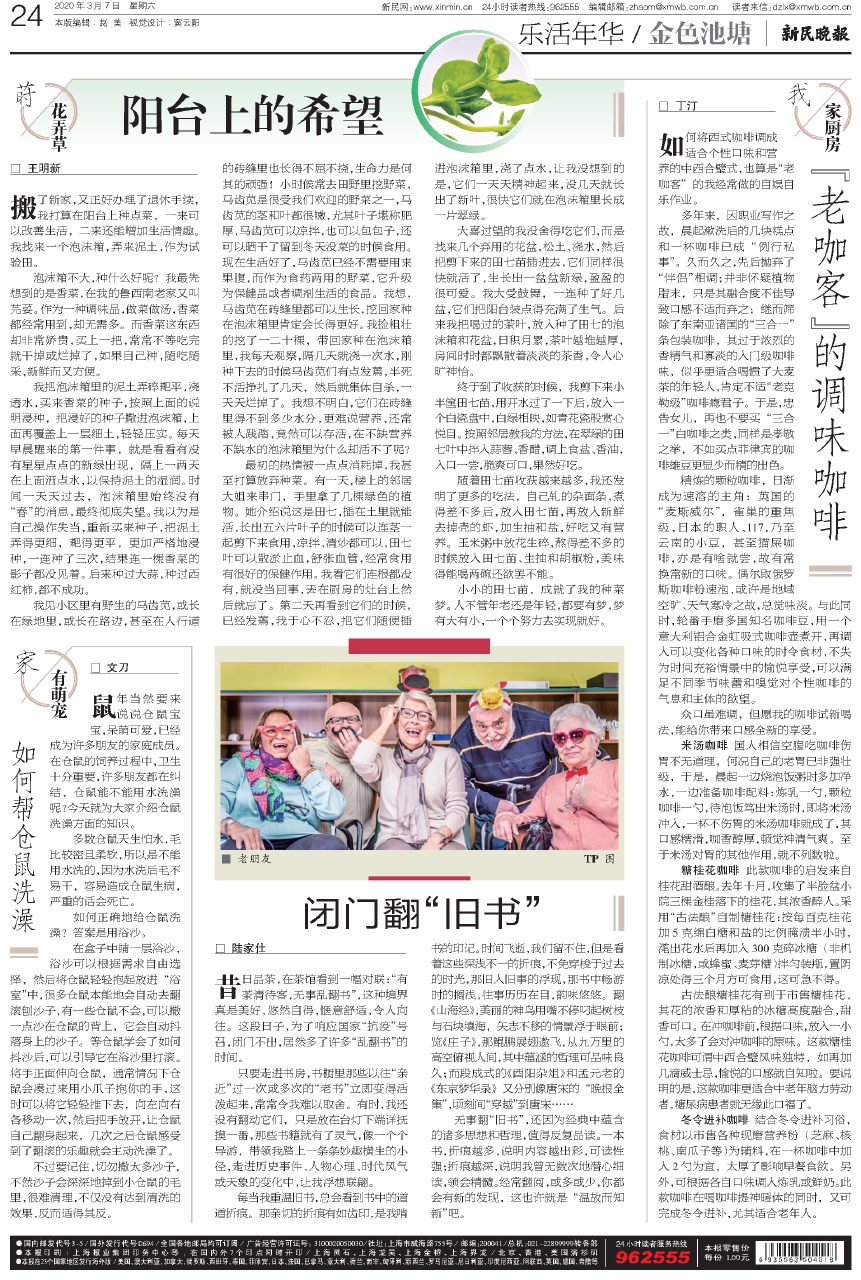 我把泡沫箱里的泥土弄碎耙平,浇透水,买来香菜的种子,按照上面的说明浸种,把浸好的种子撒进泡沫箱,上面再覆盖上一层细土,轻轻压实。每天早晨醒来的第一件事,就是看看有没有星星点点的新绿出现,隔上一两天在上面洒点水,以保持泥土的湿润。时间一天天过去,泡沫箱里始终没有“春”的消息,最终彻底失望。我以为是自己操作失当,重新买来种子,把泥土弄得更细,耙得更平,更加严格地浸种,一连种了三次,结果连一棵香菜的影子都没见着。后来种过大蒜,种过西红柿,都不成功。