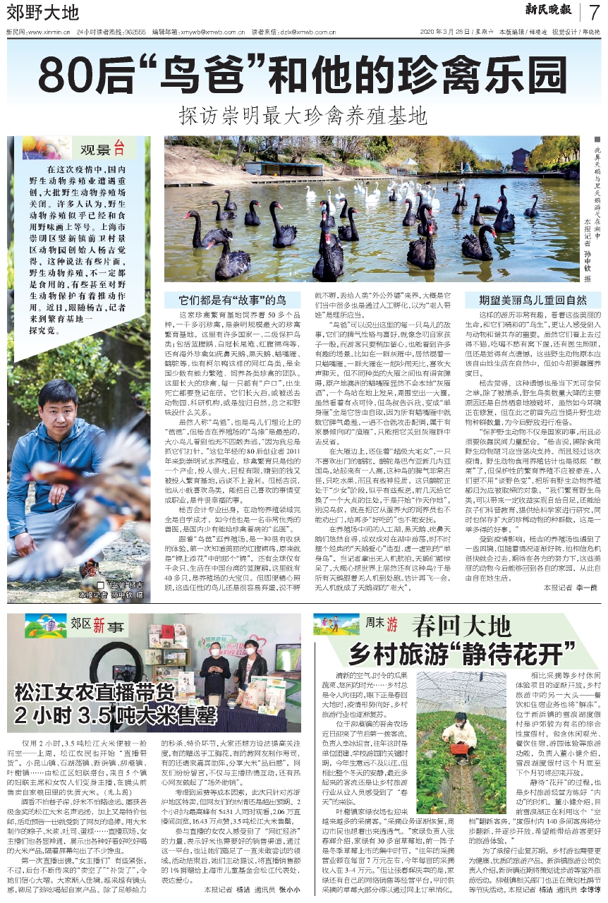 虽然人称“鸟爸”,也是鸟儿们理论上的“爸爸”,但杨吉在养殖场的“鸟缘”是最差的,大小鸟儿看到他无不四散奔逃。“因为我总是抓它们打针。”这位年轻的80后创业者2011年来到崇明试水养殖业,珍禽繁育只是他的一个产业,投入很大,回报有限,赚到的钱又被投入繁育基地,远谈不上盈利。但杨吉说,他从小就喜欢鸟类,能把自己喜欢的事情变成职业,是件很幸福的事。