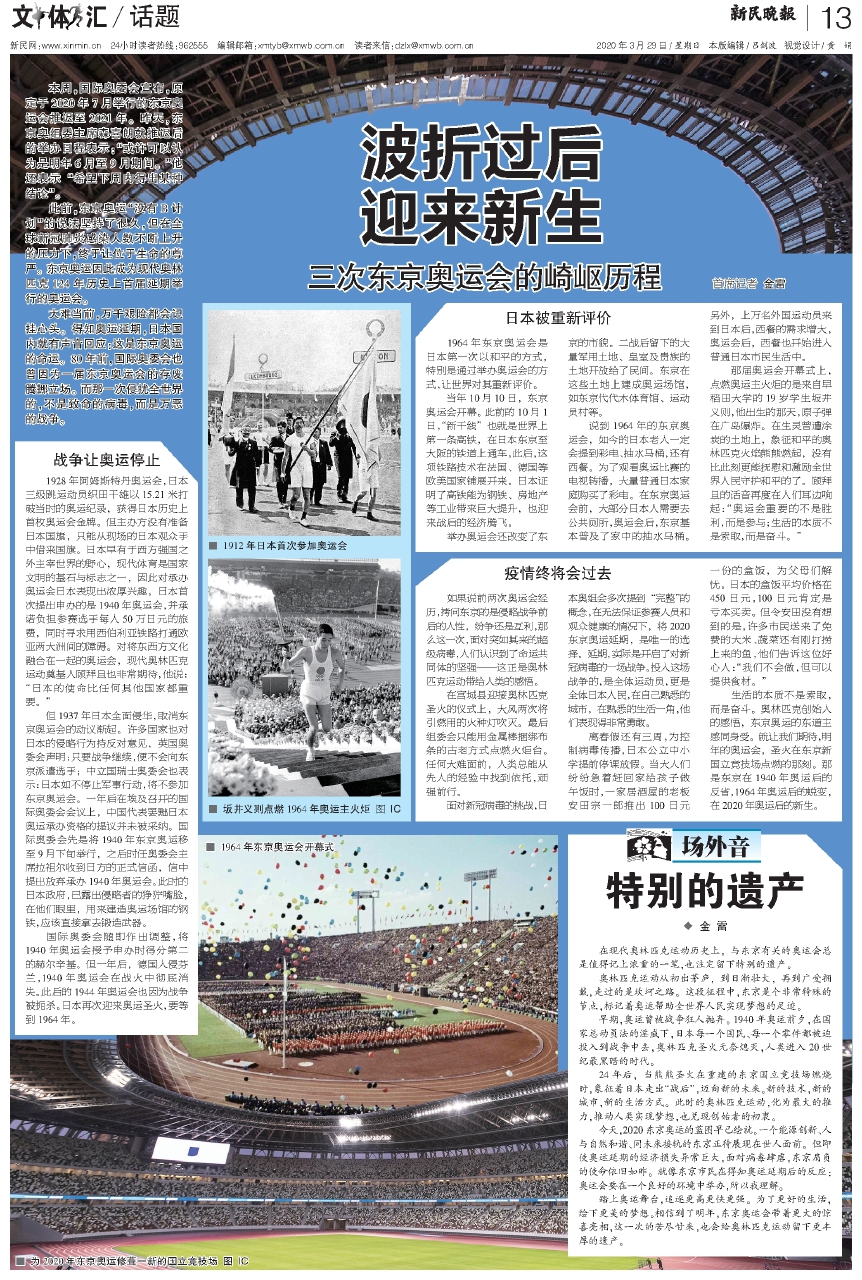 大难当前,万千艰险都会记挂心头。得知奥运延期,日本国内就有声音回应:这是东京奥运的命运。80年前,国际奥委会也曾因为一届东京奥运会的存废腾挪立场。而那一次侵扰全世界的,不是致命的病毒,而是万恶的战争。