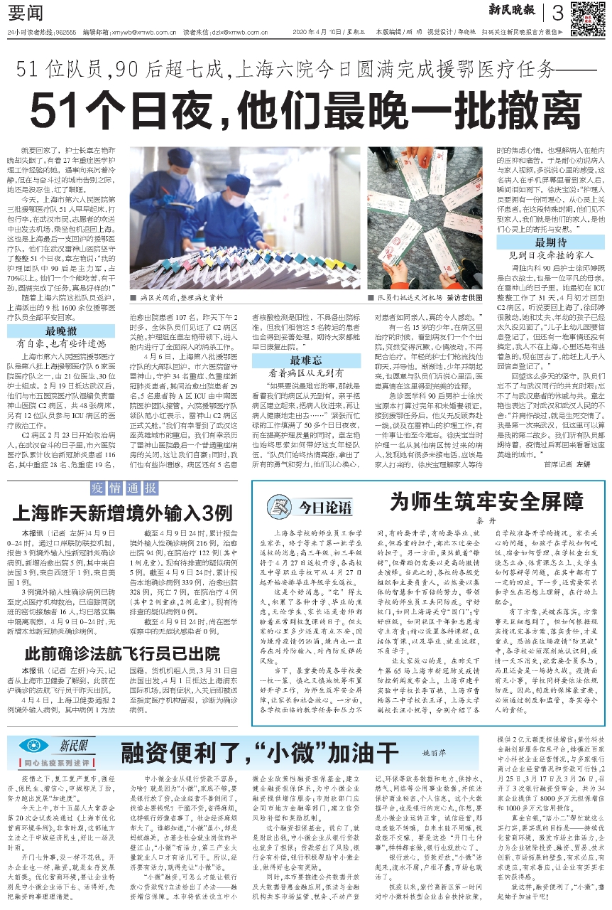 随着上海六院这批队员返沪,上海派出的9批1600余位援鄂医疗队员全部平安回家。