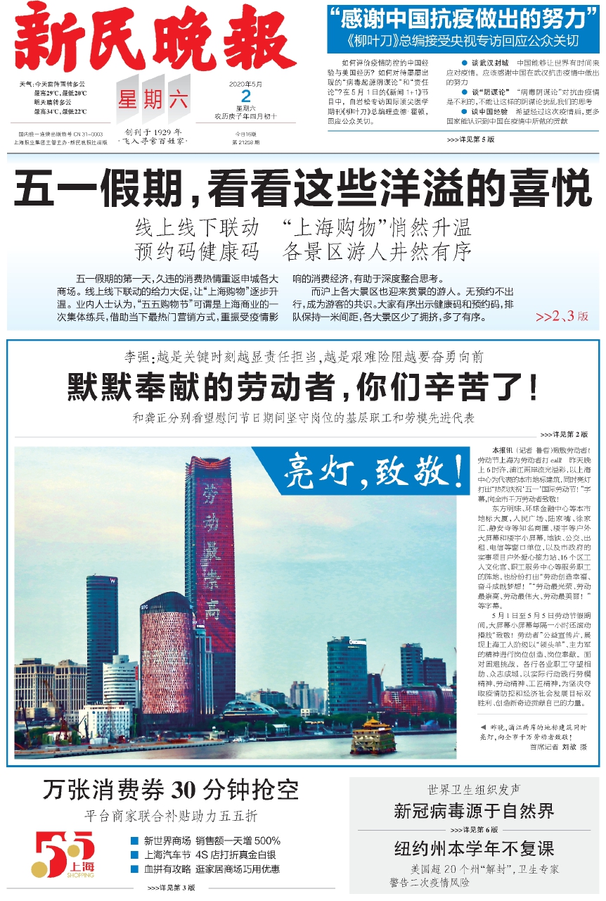 如何评价疫情防控的中国经验与美国经历?如何对待屡屡出现的“病毒起源阴谋论”和“责任论”?在5月1日的《新闻1+1》节目中,白岩松专访国际顶尖医学期刊《柳叶刀》总编理查德·霍顿,回应公众关切。 ●谈武汉封城 中国能够让世界有时间来应对疫情。应该感谢中国在武汉抗击疫情中做出的努力 ●谈“阴谋论”“病毒阴谋论”对抗击疫情是不利的,不能让这样的阴谋论扰乱我们的思考 ●谈中国经验 希望经过这次疫情后,更多国家能认识到中国在疫情中所做的贡献 >>>详见第5版